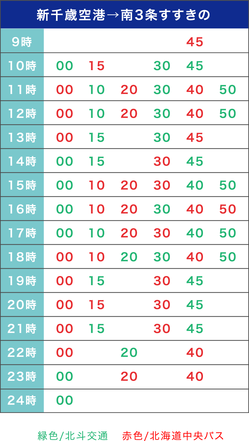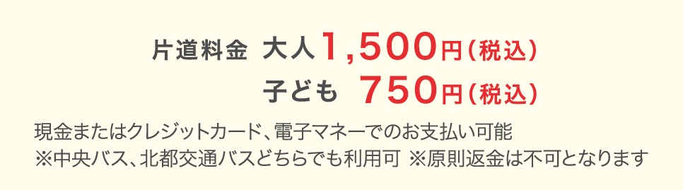 | お問合せ | 【中央バス札幌ターミナル】 0570-200-600 【北都交通株式会社】 011-375-6000 |